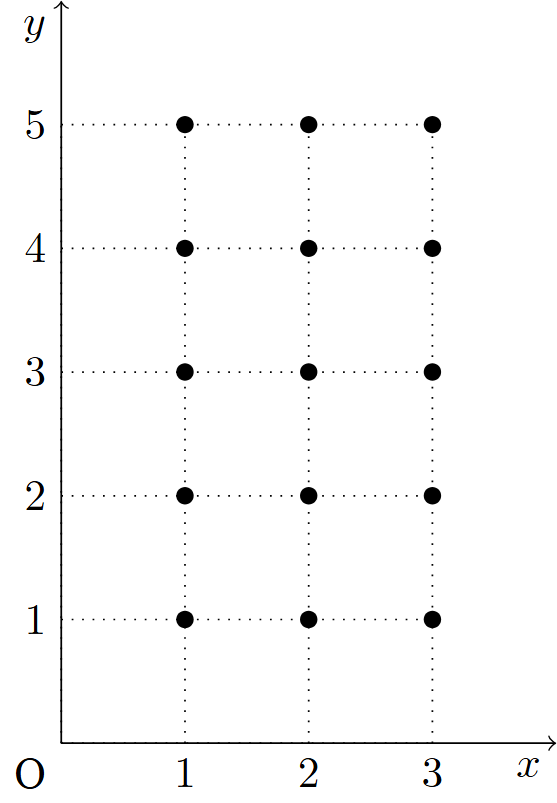 \[ \{ (x,y)\mid \text{$x,y$は$1\leqq x\leqq 3,1\leqq y\leqq n$を満たす整数}\} \]