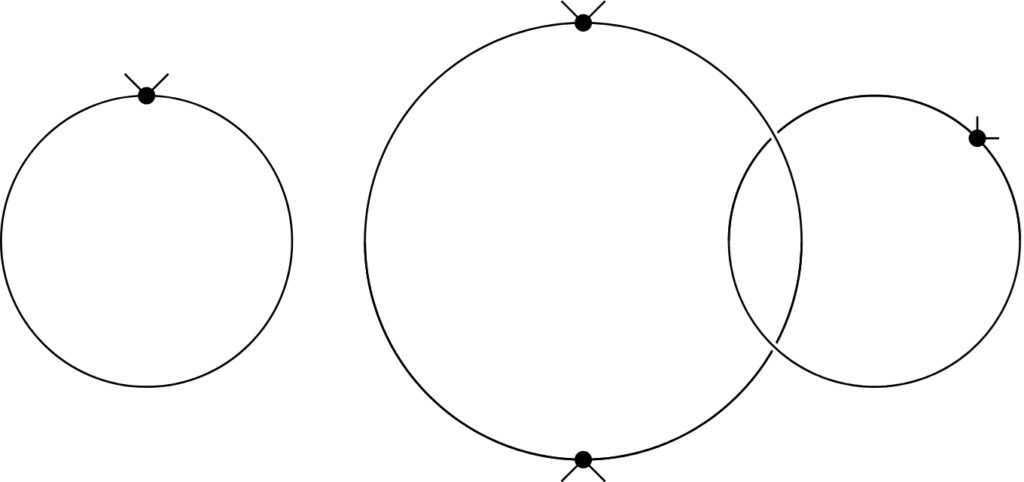 $(\ast )$ 原点$\rm O$,点$\rm P$,点$\rm Q$は相異なり,$C$の$\rm O,P,Q$における接線のうち,どの2本も交わり,そのなす角はすべて$\dfrac{\pi}{3}$となる.