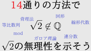 カテゴリなし √2が無理数であることを14通りの方法で証明してみた【YouTube】 2026年1月のロング動画です!この記事では,YouTubeにて公開した上の動画の資料を公開しています.以下の点を確認して,ご自由にお使いください.限定された範囲でご利用される場合は,MathAbyssへの使用許可は不要です.SNS等,不特... 2026/01/31 カテゴリなし