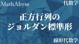 代数学 3次正方行列のジョルダン標準形 当サイトでは,ジョルダン標準形を複数の記事で解説しています.初学者の方には,以下の順番で記事を読んでいただくことを強く推奨しています.まずは,具体的な計算を通して,ジョルダン標準形の概念とその求め方を掴みます.2次正方行列については,以下の... 2025/07/05 代数学線形代数学