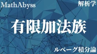 ルベーグ積分論 有限加法族 面積や体積を一般化した測度を定義する土台となる,有限加法族について解説する.有限加法族の定義有限加法族は,集合の演算である和に注目した構造である.定義1$X$を空でない集合,$\mathcal{F}$を$X$の部分集合族とする.$\math... 2026/04/12 ルベーグ積分論解析学
