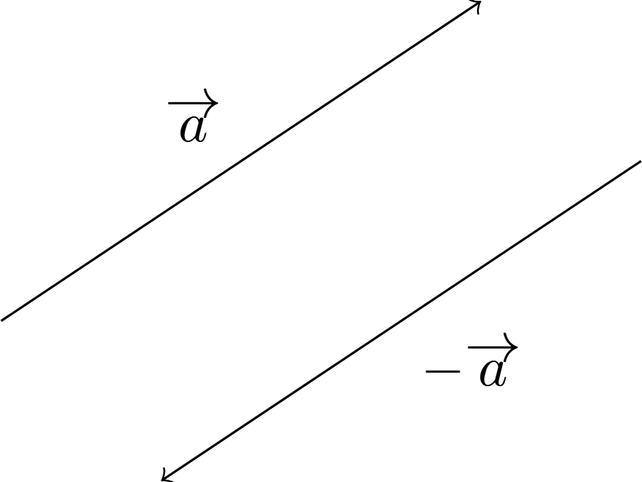 - $\overrightarrow{a}$の逆ベクトル$-\overrightarrow{a}$→向きが$\overrightarrow{a}$の向きと反対で,大きさが$\overrightarrow{a}$の大きさと等しいベクトル