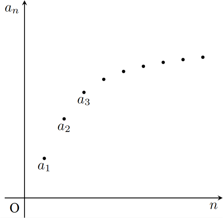 | 狭義単調増加 | $\forall n\in \mathbb{N},a_n<a_{n+1}$ |