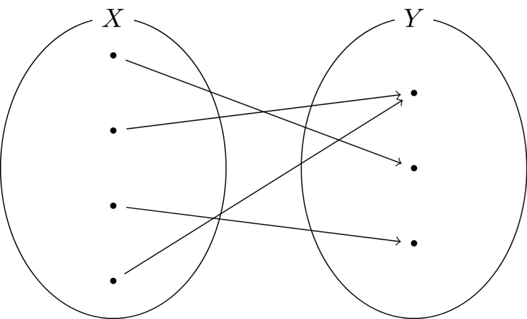 $X$を有限集合,$Y$を空でない有限集合,$m$を$X$の相異なる元の数,$n$を$Y$の相異なる元の数とするとき,次が成り立つ.