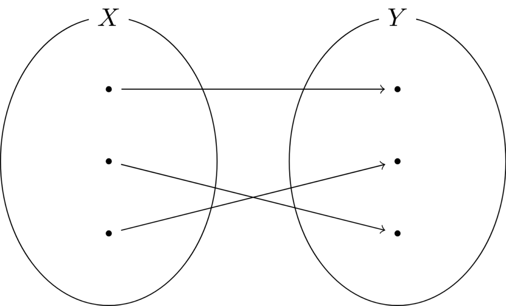 $f$が全射かつ単射であるとき,$f$を全単射(bijection)(または一対一写像(one-to-one mapping)1)という.