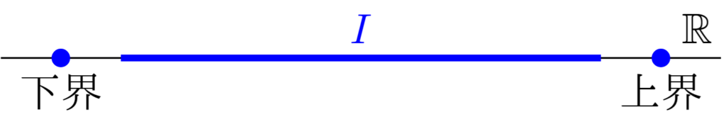 以下,$\mathbb{R}$の区間の上界・下界を考えることにする.区間についての詳細は次の記事を参照するとよい.